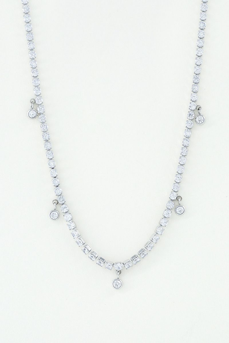 Le collier Lumi capte la lumière avec élégance. Sa fine chaîne sertie de petits diamants crée un effet scintillant tout en délicatesse, rehaussée par cinq diamants suspendus qui bougent légèrement à chaque geste.